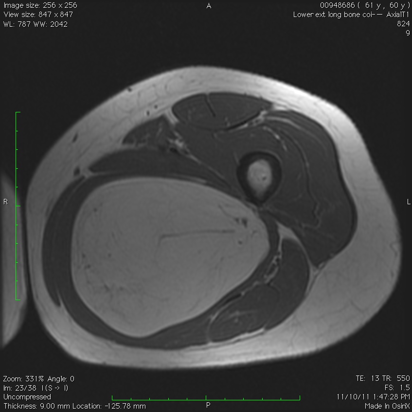 • Intramuscular lipomas are usually found on trunk, large muscles of arm, thigh, shoulder. They must be differentiated from low grade liposarcomas (well differentiated liposarcomas)