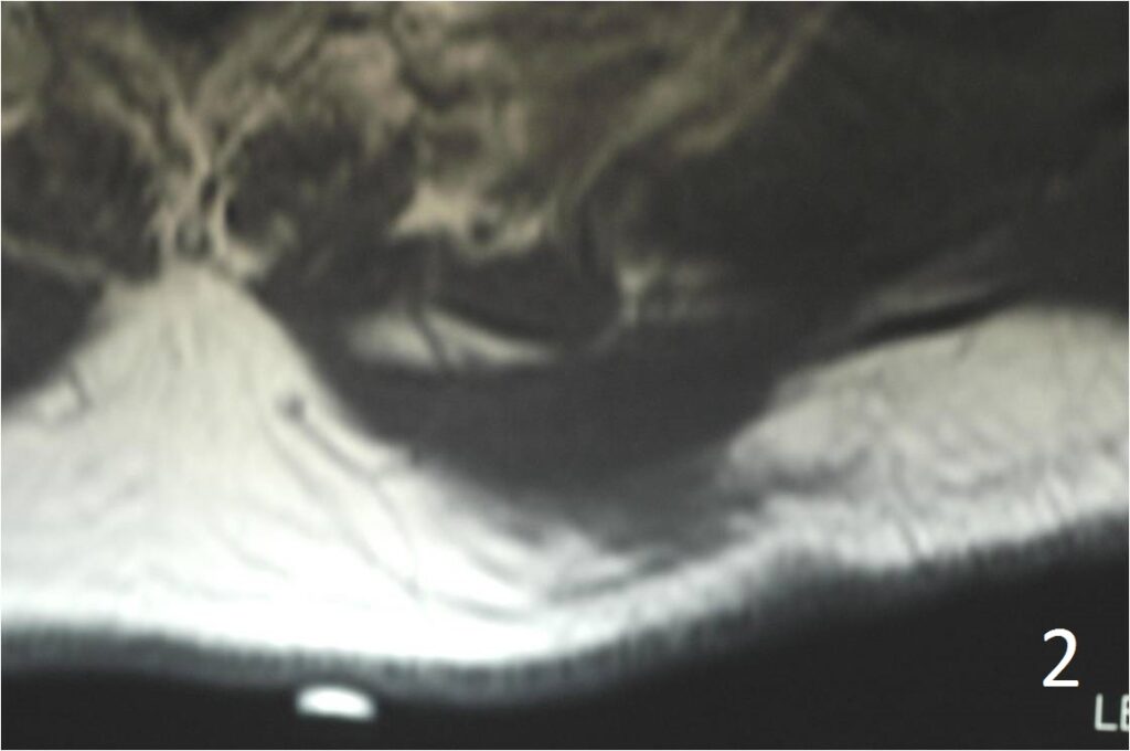 Fig. 1, 2 Axial MRI of shoulder shows a lesion in the subcutaneous tissue along the postermedial border of the scapula.