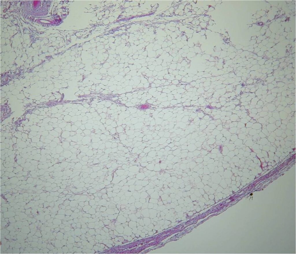 • Atypical stromal cells and lipoblasts in the context of mature fat