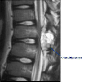 - Scoliosis and classical symptoms absent with Osteoblastoma