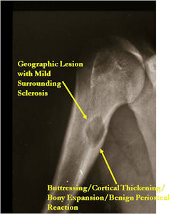 - Growth: Benign Aggressive Lesion: Continues to grow and destroy bone (osteoid osteoma has a limited growth potential–indolent)