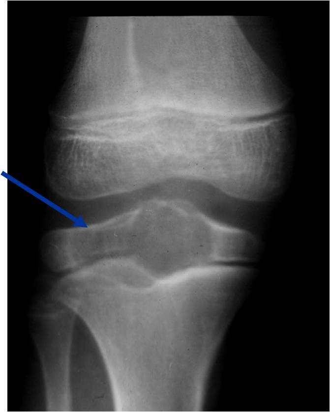- Usually occurs in Adjacent Diaphysis/Metaphysis since epiphysis is intraarticular and not surrounded by periosteum