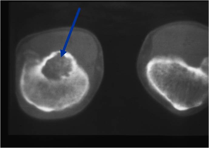 - May also occur in calcaneus, talus and temporal bone