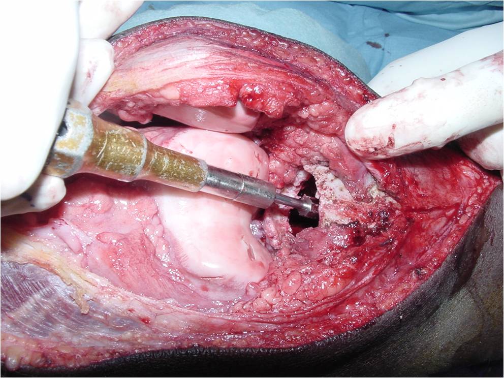- Cement and internal fixation may also be used to fill the defect after removal for selected patients