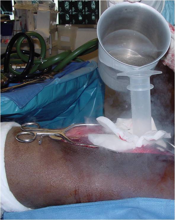 - My preferred method is to perform curettage and cryosurgery whenever feasible in appropriate cases in order to help eradicate microscopic disease and decrease the risk of local recurrence (decrease the risk of the tumor coming back in the bone after surgery)