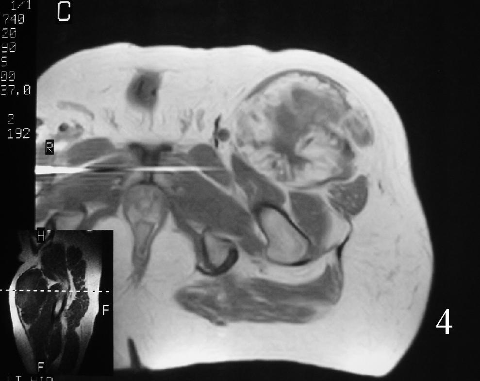Fig. 13-15 Intraoperative photographs of the patient with extraskeletal mesenchymal chondrosarcoma in popliteal fossa of the lower extremity that underwent a radical resection.