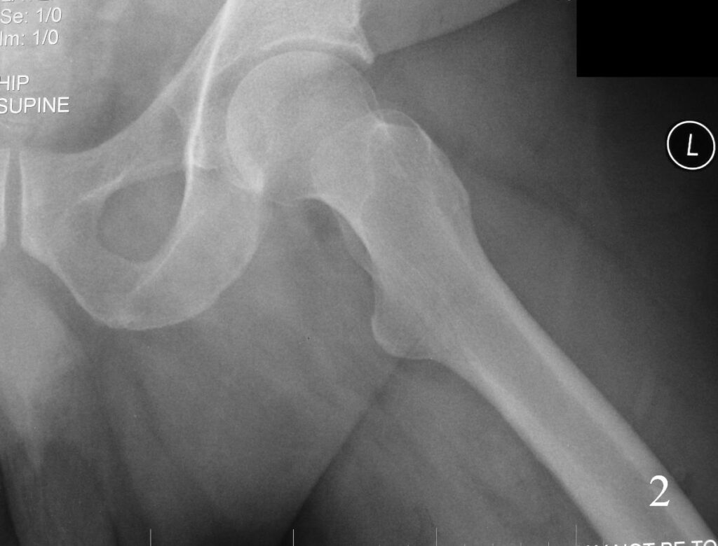 Fig 1-2. AP X-ray and lat (Fig. 2) of left hip shows a nonspecific soft tissue mass.