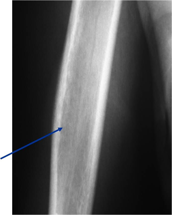 - Periosteal reaction—may look benign