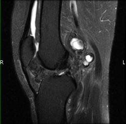 - Joint effusions and bony erosions are well demonstrated. As with CT, contrast enhancement is typical.