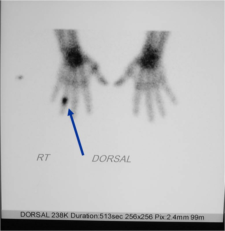 - Endosteal erosion>2/3 cortical thickness on a CT scan