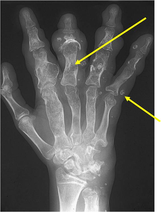 - Enchondral ossification may occur around periphery of lobules and when calcified appear as “Rings and Arcs” on X-rays